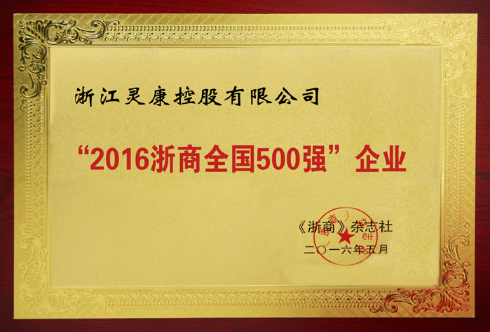 浙江灵康控股有限公司再度荣膺“2016浙商全国500强”