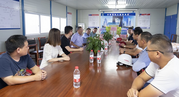 蒋总、杨总、陶总工在项目部会议室,与中南建设、华洲国际以及腾河市政等单位的干部及员工代表进行座谈,充分肯定了参建单位前期的工作成果,并要求大家严把安全关、质量关、进度关,进一步加强协作、密切配合,按计划稳步推进项目进展,齐心协力将灵康国际大厦项目打造成精品工程、示范工程。