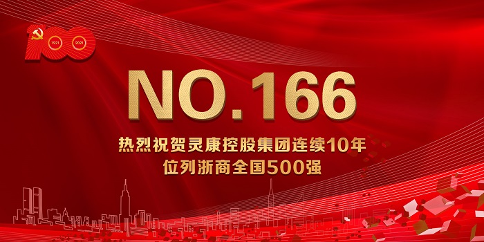 2021 年 8 月 9 日,“2021 浙商全国 500 强”榜单正式发布,灵康控股集团凭借 2020 年营收97.23 亿的佳绩,位列第 166 位,综合实力连续 10年位列浙商全国 500 强。