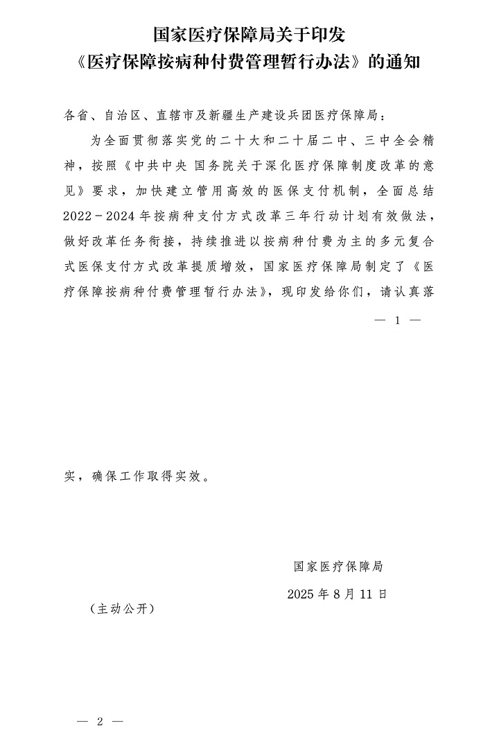 国家医疗保障局关于印发《医疗保障按病种付费管理暂行办法》的通知